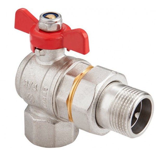 Кран-американка шаровый угловой полнопроходной с полусгоном (ручка-бабочка) внутренняя-наружная резьба /MVI™/