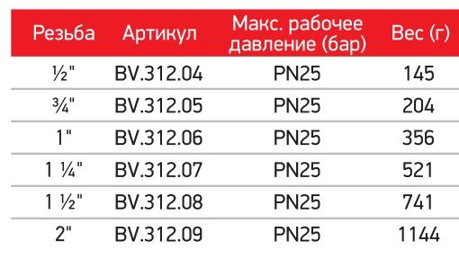 ХАРАКТЕРИСТИКИ ШАРОВЫХ КРАНОВ AquaHit РГШ: