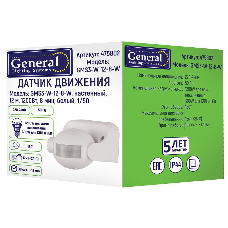Настенный инфракрасный датчик движения GMS3-W-12-8-W /General™/