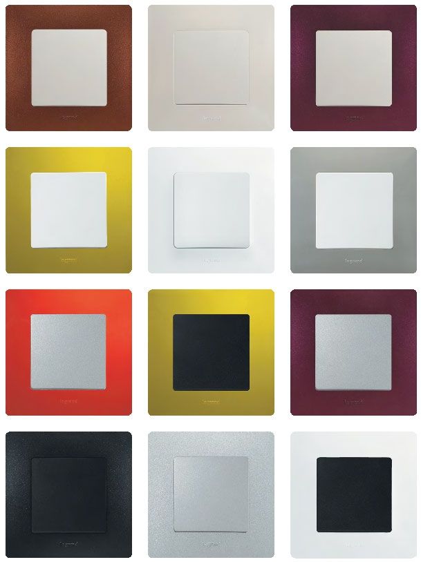 Эта серия электроустановочных изделий предлагает на выбор четыре цвета лицевых панелей -