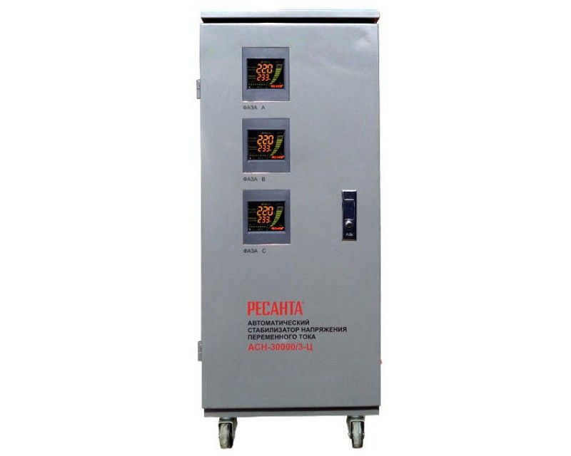Стабилизатор напряжения РЕСАНТА АСН-30000/3-Ц служит для обеспечения «гарантированным» электропитанием трехфазных потребителей в условиях нестабильной сети.