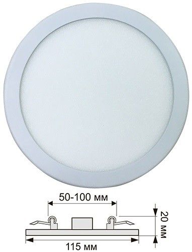 Ультратонкий встраиваемый светильник downlight с креплением под отверстие диаметром от 50 до 100 мм