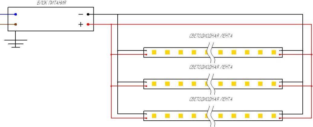 Светодиодная лента может отрезаться необходимой длины кратно 5см.
