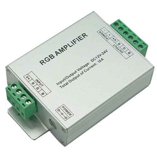 Усилитель питания используется вместе с RGB-контроллером и позволяет увеличить суммарную мощность подключаемой светодиодной ленты, в случае когда мощности контроллера недостаточно.