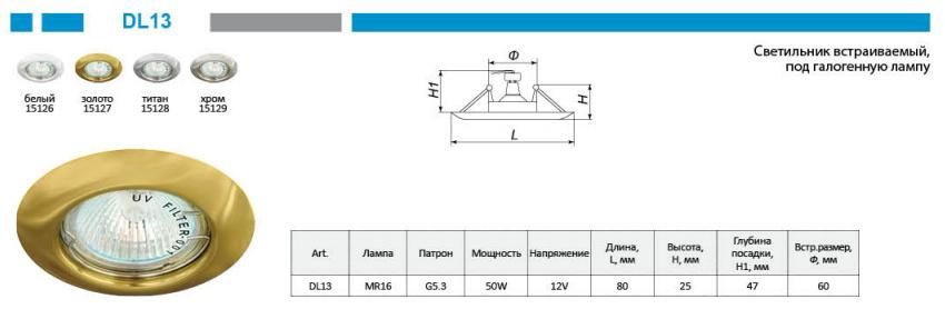 Встраиваемый светильник DL13, цоколь GU5.3, неповоротный /Feron™/